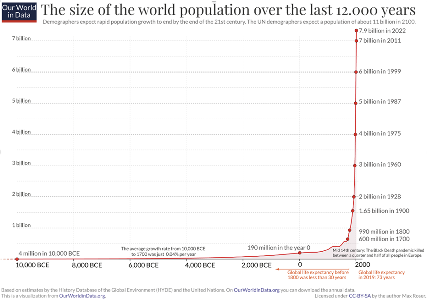 While our numbers were quadrupling, it is true our consumption has also run off the rails and is generating the resource and environmental crises that now loom. Since 1972 human consumption of material resources has tripled from 29 billion tonnes a year to 101 billion tonnes in 2021 – and is on track to reach 170 billion tonnes by 2050, as documented in _The Circularity Gap_ report.