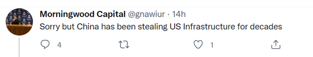 What’s even more intriguing though, is not the people who deny China’s infrastructure, but those who claim it’s “stolen” from the USA In a remarkable series of tweets since the CNN report; we see what could be humorous, but in fact turn out to be serious tweets like this: