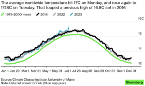 Global daily average temperature hits a new record