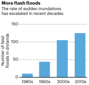 Several factors are contributing to the increasing rate of, and mortality associated with, flash floods in drylands in recent decades (see graph above):