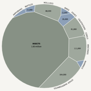 Two-thirds of the world’s more than 1.5 million animal species are insects – beetles alone make up a quarter. For comparison, vertebrate species, that we tend to regard rather more fondly because they are appealing and/or food, number roughly 73,000.