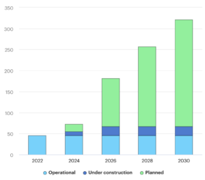 The International Energy Agency has identified existing, under construction and planned CCS projects that will become operational between 2022 and 2030 (see below). At present, the vast majority, not surprisingly, are still being planned but even if they all come to fruition, it is projected that by 2030 only 320 million tonnes of CO2 will be captured each year. The biggest increase in capture will occur in the power and heat industry.
