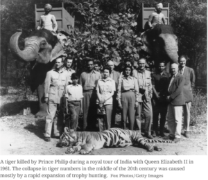 When India gained independence in 1947 there were tens of thousands of tigers in the wild. Following independence, trophy hunting of tigers expanded beyond the previous colonial elite and by the early 1970s there were only 1,800 tigers left (cheetahs had been wiped out completely). The Indian government initiated Project Tiger which involved anti-poaching measures (although poaching still occurs), relocation of villages to expand tiger reserves and improving the reserves. Fifty years later, the number of reserves has increased from nine to 53, the area included has grown from 14,000 to 75,000 square kilometres, and the number of tigers has expanded to just less than 3,200. During the same period India’s population has quadrupled.