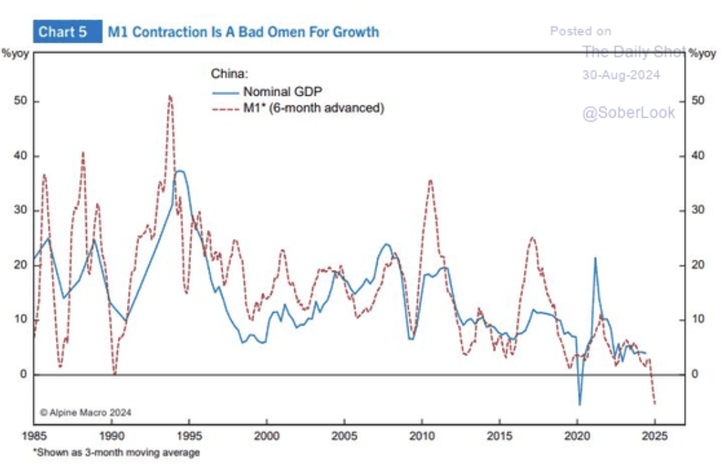 - China’s shrinking narrow money supply poses a threat to its economic growth and with it, Australia’s growth prospects.