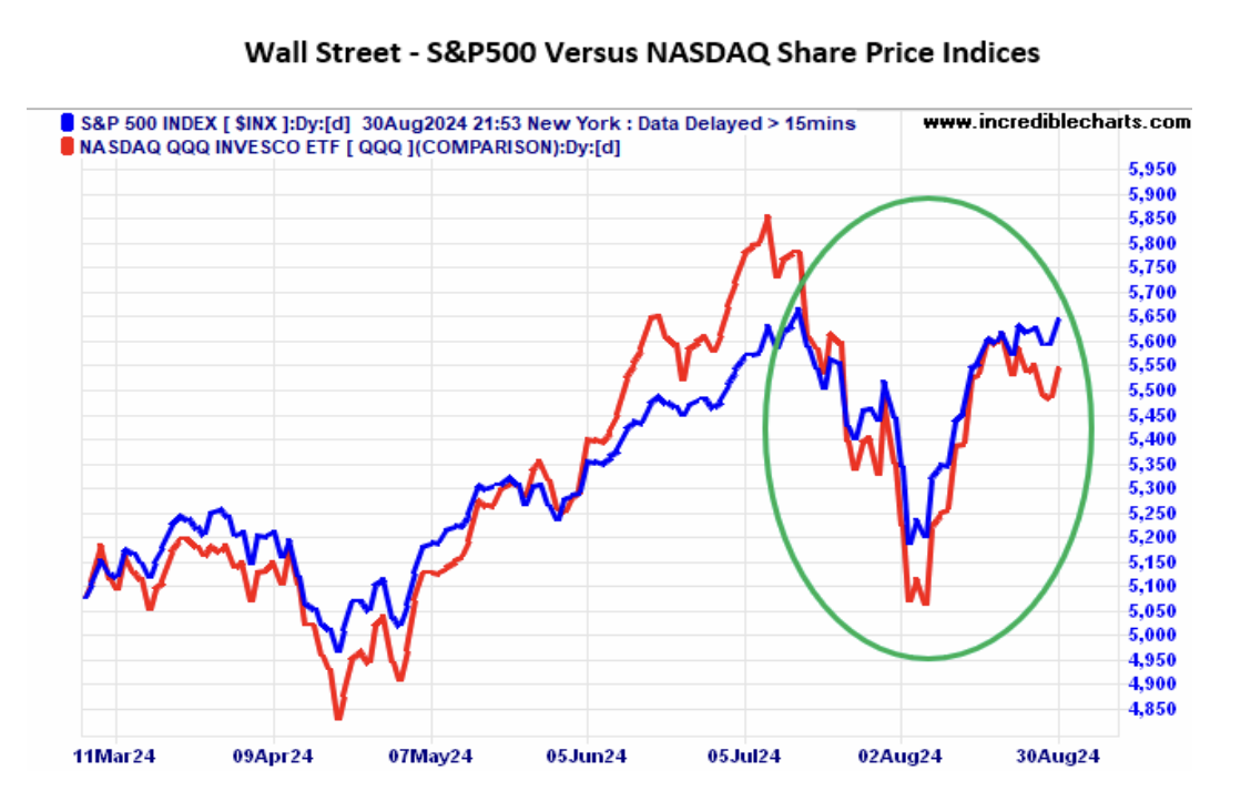 The main reason for the sharp V-shaped trading pattern of August was initial fear that the US economy could plunge into recession because of a weakening labour market followed by good news that US inflation was tamed so the Federal Reserve would start cutting its cash rate in September to ensure a soft or no economic landing.