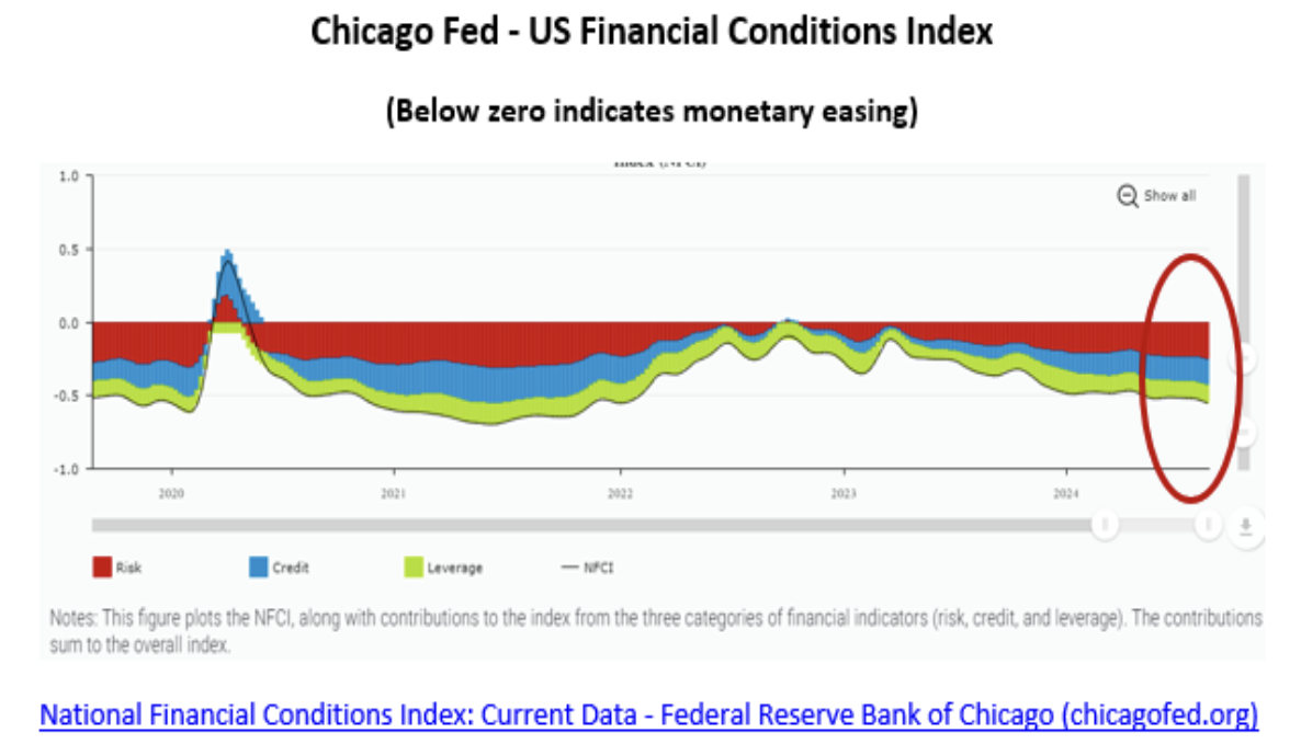 2. US financial conditions remain loose, which is a positive signal. See chart below.