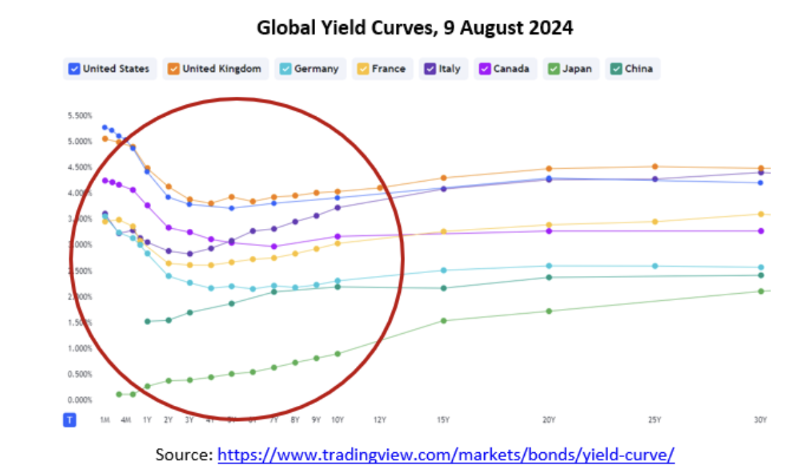 6. Globally, except for Japan, all other large economies still have negative yield curves along the entire maturity spectrum which is ominous.