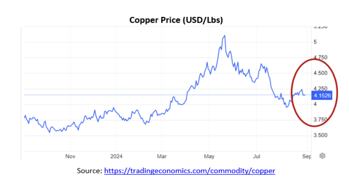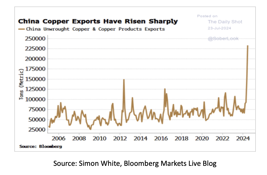 Note also that China is flooding the world market with cheap copper, a refection of its industrial overcapacity.