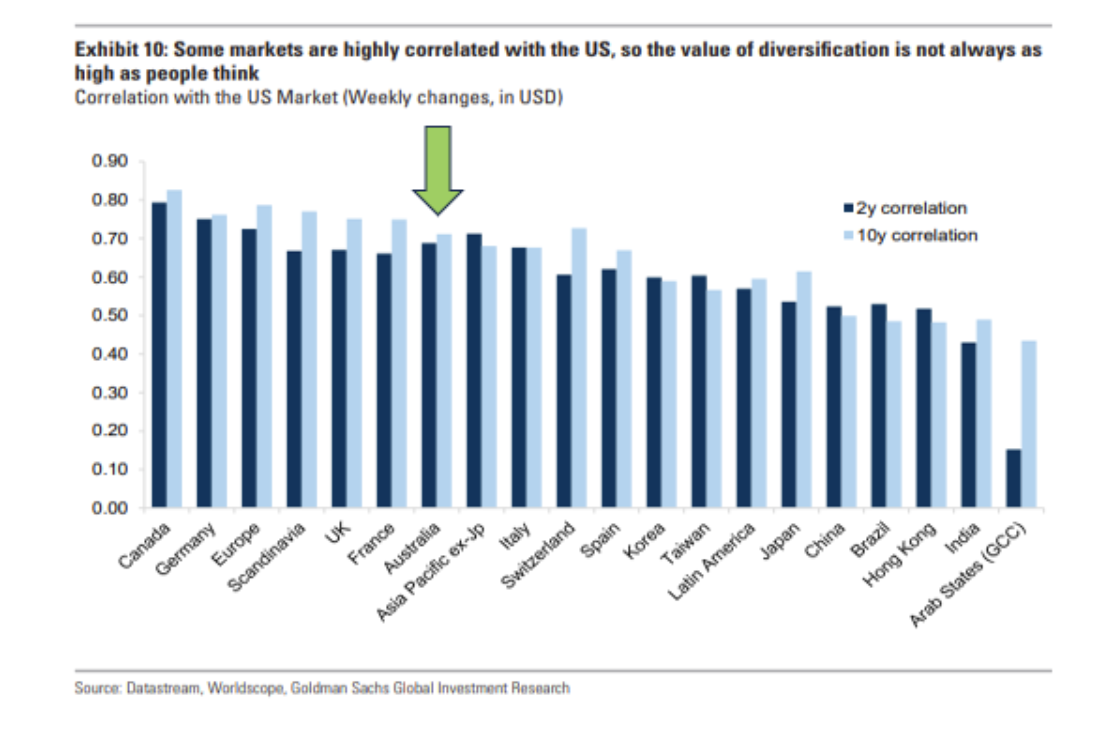The Australian All-Ords index is highly correlated to the American S&P 500 index as shown by the following chart. About 70% of the All-Ords movements mirror the S&P500, meaning only 30% are caused by local or foreign events not impacting the USA. Hence the importance of tracking what is happening on Wall Street’s stock exchange.