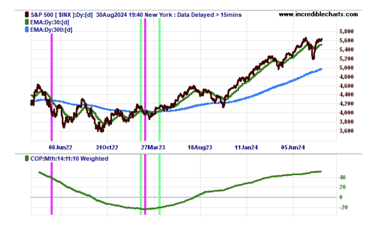 - The Coppock momentum indicators of both markets are positive. They turned up in negative territory early last year signalling the previous bear market was over.