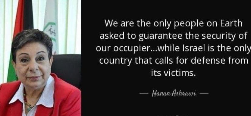 ‘We are the only people on Earth asked to guarantee the security of our occupier.’..Hanan Ashrawi