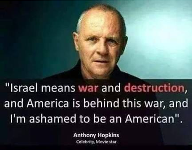 ‘America is behind this war and I am ashamed to be an American’…Anthony Hopkins.