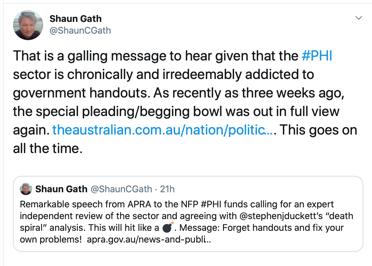 As Associate Professor Annette Schmeide from BUPA’s research foundation pointed out, many of the issues affecting PHI are systemic issues affecting health care more generally, particularly in the private sector.