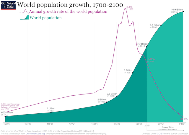 What about humans? Here is a plot of human population on our ‘island earth’, from Our World in Data.