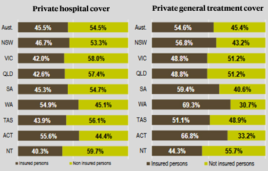 The numbers on private cover vary widely, but many Australians don’t have any. Source: APRA