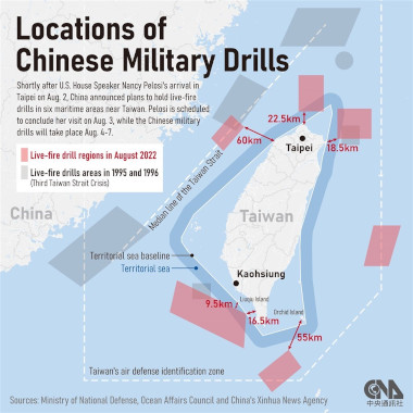 The drills are expected to be bigger than the missile tests China launched during the Third Taiwan Strait Crisis that was sparked in 1995 by the US granting a visa to former Taiwanese President Lee Teng-hui.