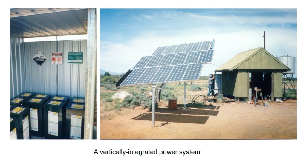 For about 30 years until 2011 I was half-owner of a small cattle station on the edge of the arid zone in South Australia. When I first became involved the station was operating on a 32 volt “lighting plant” – one of those systems that allows you to use an iron or a toaster, but not both at the same time, particularly if you want to have the lights on, and 32 volt appliances were getting as hard to buy as buggy wheels.