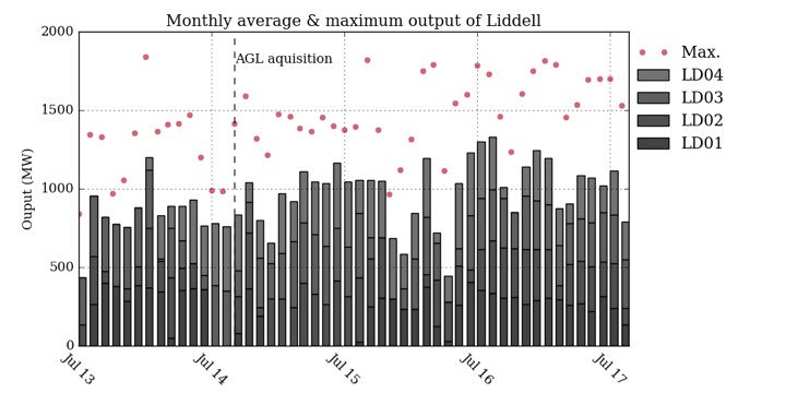 Here’s some more facts about Liddell. On average it only operates at around half of its capacity, as this graph above shows. Sometime it is a lot less.