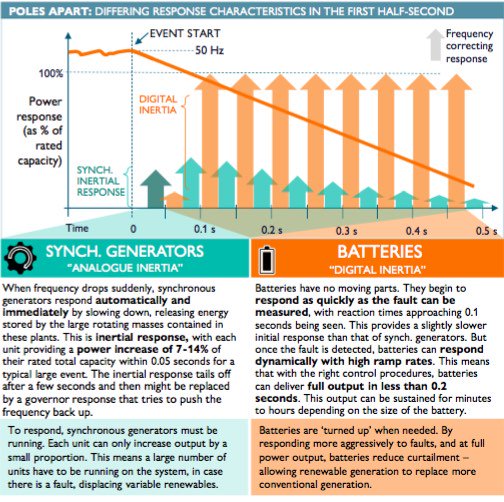The experience in Australia with the Tesla big battery is already proving similar. What the Tesla battery has demonstrated is that while it will never beat fossil fuel generators on their immediate inertial response, it is substantially quicker to do whatever is required next.
