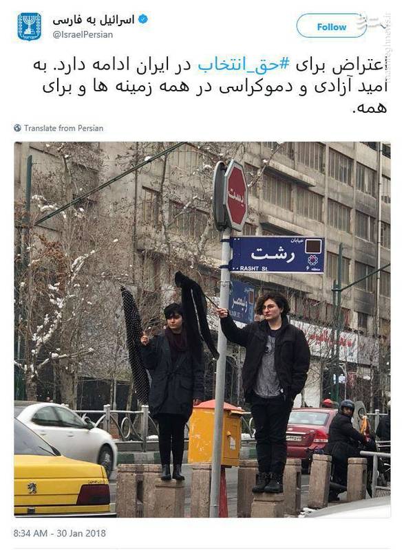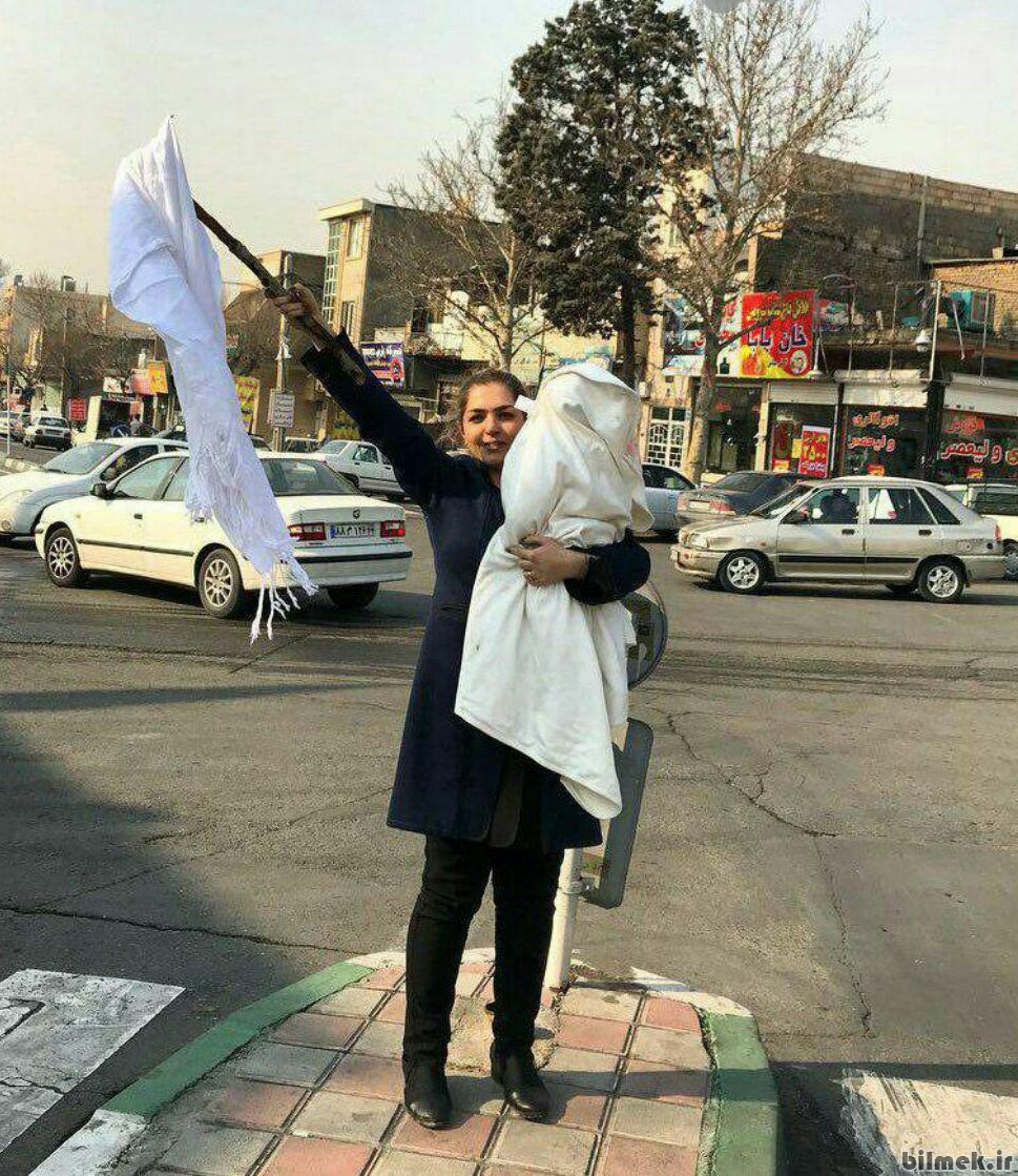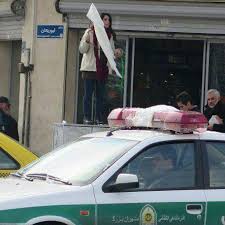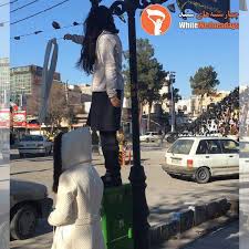 Recently Iranian women started a movement all over the country especially in Tehran . They stand on a platform, take their scarves off and drape them over a street sign. It is in protest again the Islamic dress code . In Tehran, 28 women have been caught and gaoled so far . The first woman arrested did it in Tehran’s Revolution Street so they are called “The Girls of Revolution Street.” See photos.