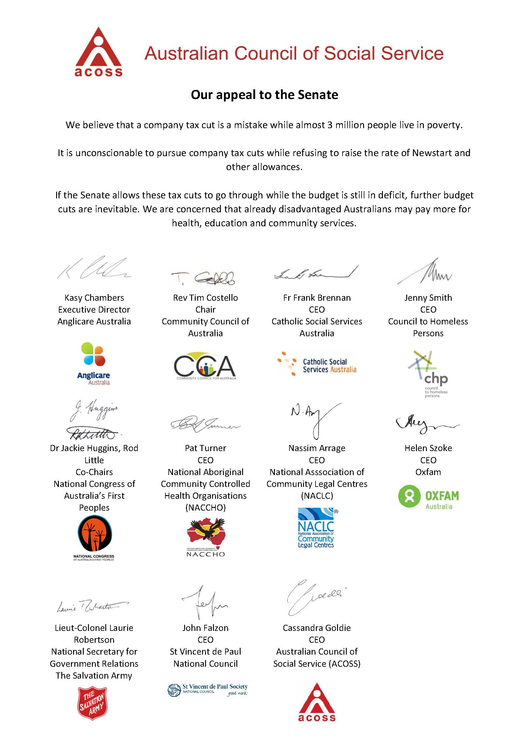 AUSTRALIAN COUNCIL OF SOCIAL SERVICES - Appeal to Senate
