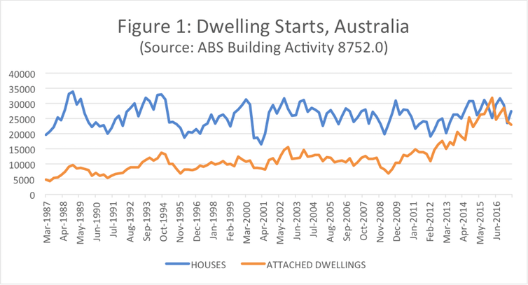 In 2015, we passed an important, but largely unrecognised, milestone in Australia. It was the first year in the country’s history that dwelling starts for attached properties overtook those for detached houses.