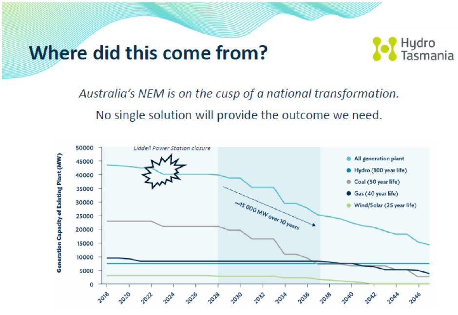 The graph in question shows the expected run off of installed electricity generation as existing plant ages and dies. The picture tells the 15,000MW story. The Liddell station closure is a minor blip in the broader scheme of things.