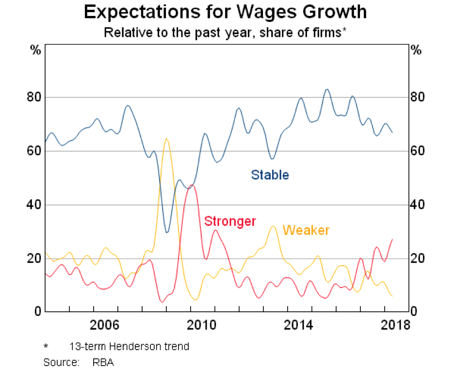 The graph still shows more than 70 per cent of firms not expecting wages growth to pick up.