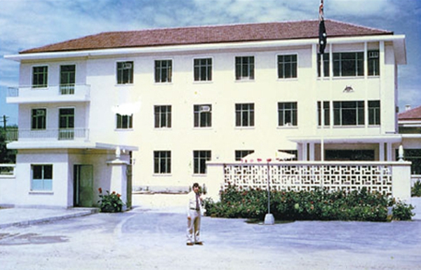 FitzGerald stands in front of the new Australian Embassy building in 1974.