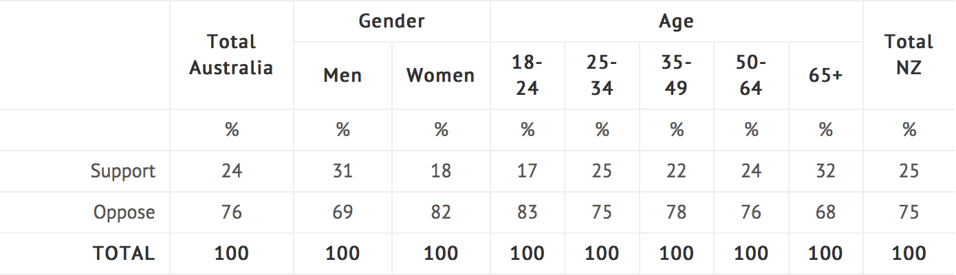 “Opposition to Trump’s decision is unanimous across all age groups – although the strongest opposition comes from those aged 18-24 at 83%, opposed clearly by both genders and in every Australian State. Trump’s decision is also opposed in almost equal measure across the Tasman with 75% of New Zealanders indicating their opposition.”