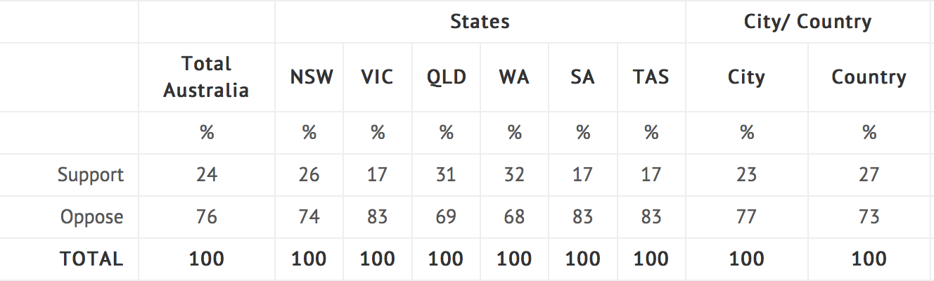 Analysis by States & Regions: Southern States (Vic, SA, Tas) more opposed than others