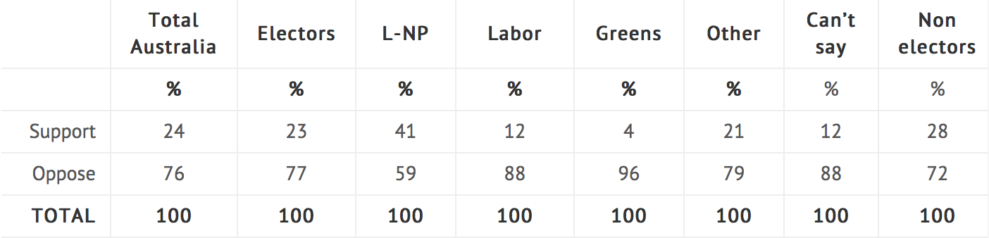 Analysis by Fed. Voting Intention: Greens & Labor supporters more opposed than L-NP supporters
