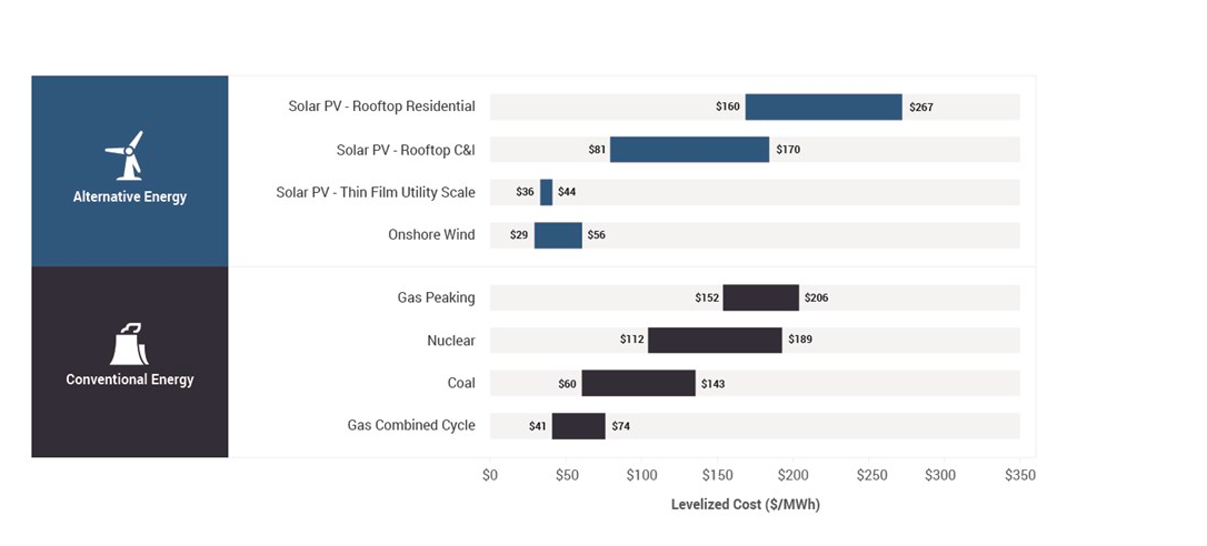 “We have reached an inflection point where, in some cases, it is more cost effective to build and operate new alternative energy projects than to maintain existing conventional generation plants,” s ays George Bilicic, the vice chairman and global head of Lazard’s Power, Energy & Infrastructure Group.