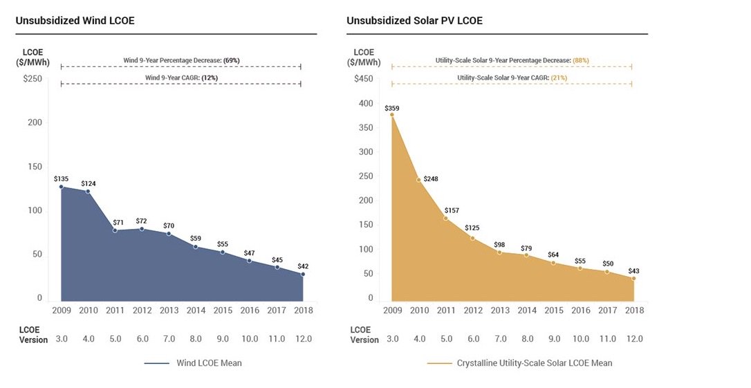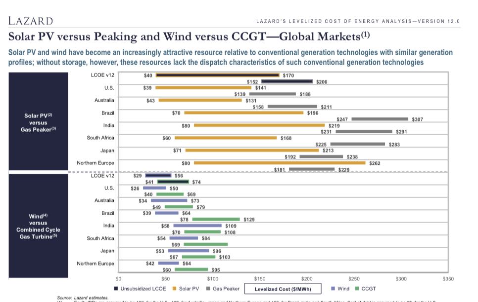 These conclusions are made in the 12th edition of the annual Lazard Levelized Cost of Energy Analysis, which has become one of the major global industry benchmarks.