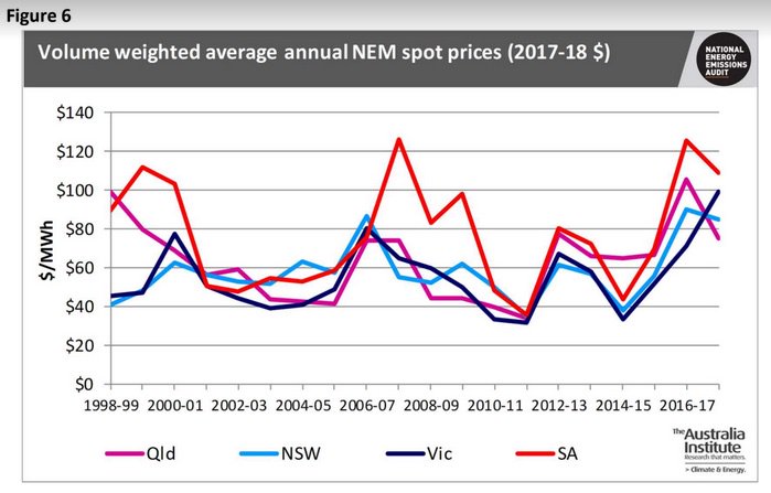 “Quarterly volume weighted average spot prices, as calculated by the Australian Energy Regulator, have been lower in each of the five NEM regions (states) in both the June and September quarters this year than in the corresponding quarters in 2017, indicating that the market is now recovering from the shock induced by the sudden closure of Hazelwood power station.