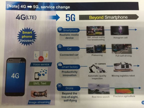In his presentation, Min predicted that 5G will enable a wide range of convergence industries. These include new forms of media for smartphones, such as virtual reality and holograms. Connected cars and autonomous driving will be enabled, as will smart manufacturing, such as automated quality control and logistics robot transport solutions. Drone technology will also be empowered, enabling not just remote delivery, but also “precision agriculture.”