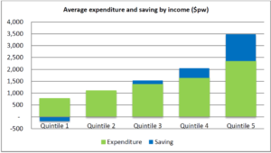 In Australia, income tax cuts are likely to be much less effective than increases in social security payments because the lowest 30% of households by income do not pay income tax. Low-income households have little choice but to spend every extra dollar they receive on essentials. Thus, social security payments targeted to these households are more likely to be spent. In contrast, at a time when middle and high income-earners are heavily indebted, they will be tempted to use a tax cut to pay down mortgages and credit cards. On average, the highest 20% of household by income save one-third of their income, while the lowest 20% ‘dis-save’ – draw down their savings or borrow money to cover basic expenses.