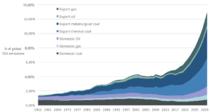 This week’s graph, from page 4 of ‘Evaluating the significance of Australia’s global fossil fuel carbon footprint’, presents more evidence to combat the Australia’s-emissions-are-too-small-to-matter argument. Three points to note: 1) Australia’s combined domestic and exported fossil fuel emissions currently account for about 5% of global CO2 emissions; 2) this will increase over the next decade (based on current government and industry projections to about 13% of the global emissions compatible with limiting warming to 1.5oC); and 3) our exported emissions (‘don’t blame us, we just dig ‘em and sell ‘em, others burn them’) consistently and increasingly exceed our domestic ones. Global warming aside, Australian coal will kill thousands in Asia every year from air pollution. How good is Australia, ScoMo?