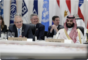 All smiles below for Scott Morrison, Senators Corman and Birmingham and the de facto head of government of one very rich fossil-fuelled country (with a dubious, to be generous, human rights record but very powerful friends) at the G20 Summit in June. Previous heads of government of Timor Leste, a country with aspirations for fossil fuel riches but of no strategic relevance, weren’t quite so happy when talking about Australia’s disgraceful negotiating strategies, contempt for international law and shocking ethical standards during this week’s Four Corners program on the prosecution of Witness K and Bernard Collaery.