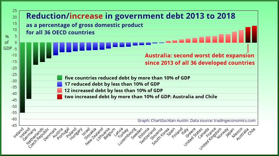 Fast forward six years and gross debt has more than doubled to $557.3 billion, which is 28.7% of GDP. The increase over the last six years is the second greatest in the OECD, after only Chile.