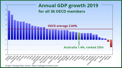 The actual outcomes, however, which the mainstream media steadfastly refuse to report, have been the worst deteriorations in the world. From 5th ranking in Labor’s last year, GDP growth slipped to 13th in 2016, then to 21st in 2017 and is now placed 25th with annual growth at a miserable 1.4%.