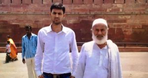 Zainul Ansari with his grandson at the Red Fort, Delhi