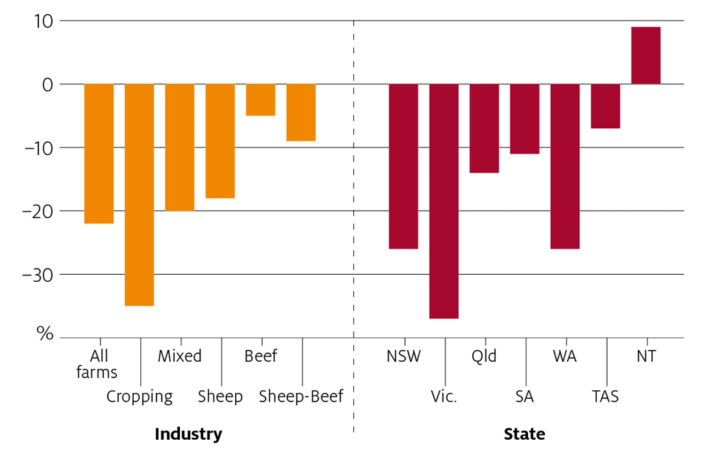 The effects have been most pronounced in the cropping sector, reducing average profits by 35%, or $70,900 a year for a typical cropping farm.