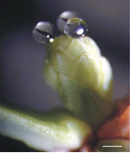 In a good year the male cones of a deodar tree (Cedrus deodara) can produce 14 billion pollen grains. Totally reliant on the wind for pollination (like all conifers), the deodar releases them all together in a huge yellow cloud. Sydney’s Royal Botanic Garden website explains how a female cone on another deodar tree can catch and give the stamp of approval to a living deodar pollen grain but reject a dead grain or pollen from other species or a speck of dust, any of which might clog up the female sex organ and waste an egg. It’s a remarkable story of chemistry, physics and engineering, with a clue in the picture below, from a species of Juniper rather than a deodar. (I’d never heard of a deodar until I came across mention of one a few years ago in the second paragraph of ‘The High Window’ by Raymond Chandler. If you haven’t read any Chandler, give him a go. He has a great turn of phrase and his hero, Philip Marlowe, is wonderfully laconic.)