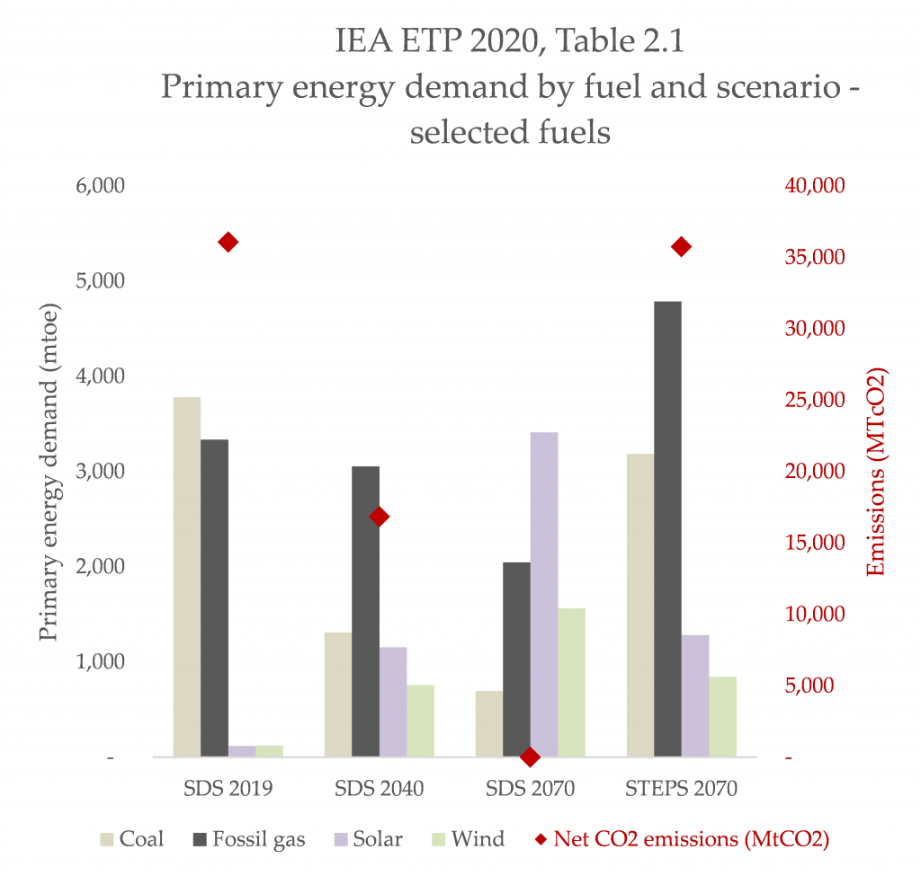 The International Energy Agency’s various forward-looking scenarios in their technology-focused update paints another very familiar picture for gas: the better the climate outcomes (the ‘SDS’, or ‘sustainable development scenario’), the less gas: