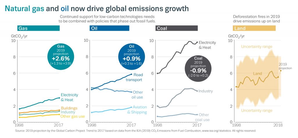Australia’s centrality in extracting gas means it is a key player in the consequences of burning gas after it’s sent overseas. That is something we know, with total confidence, has become the red hot engine of world’s emissions growth, as elaborated in the 2019 Global Carbon Project’s Carbon Budget report: