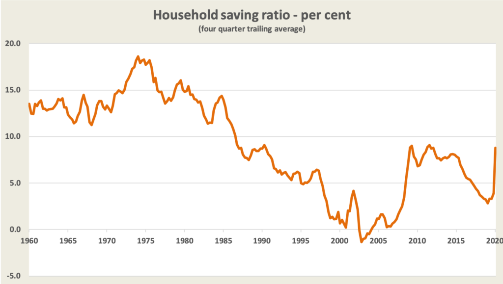 Also standing out in the national accounts has been a significant jump in the household saving ratio. There are two possible reasons.