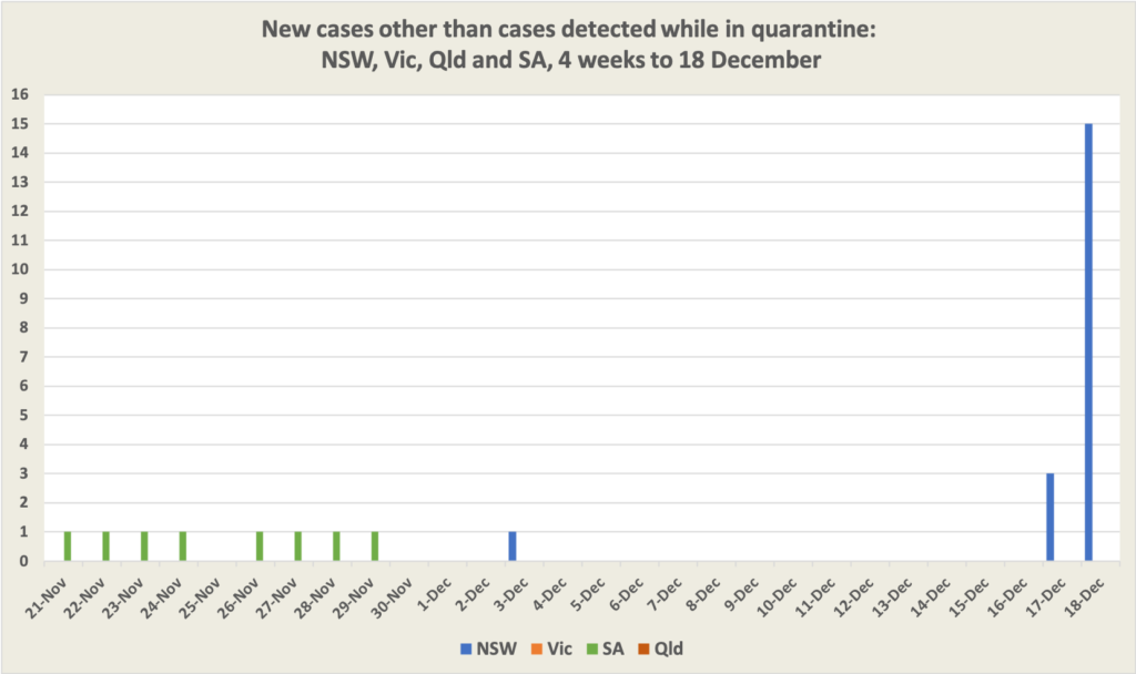 Just as we approached a clear run with no local transmission of coronavirus, New South Wales has come to the party with an outbreak in Sydney’s northern beaches, and another case linked to hotel quarantine. Even if this outbreak turns out to be contained, it will have a chilling effect on people’s plans around the holiday season, to the detriment of both individuals and businesses.