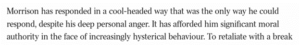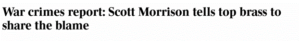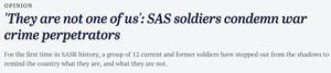However, The Australian seemed more concerned with the wrongful punishment of soldiers who had done nothing wrong: with the decision, since backtracked on, by head of the Australian Defence Force, Angus Campbell, to strip from all the special forces personnel in Afghanistan of the meritorious citations.