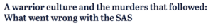 - Cover-ups. A specific incident described to Dr Crompvoets involved an incident where members from the ‘SASR’ were driving along a road and saw two 14-year-old boys whom they decided might be Taliban sympathisers. They stopped, searched the boys and slit their throats. The rest of the Troop then had to ‘clean up the mess’, which involved bagging the bodies and throwing them into a nearby river. Dr Crompvoets says she was told this was not an isolated incident. In this context, Dr Crompvoets says she was told that Special Forces soldiers were committing unsanctioned killing in order to ‘get a name for themselves’ and to join the ‘in’ group.